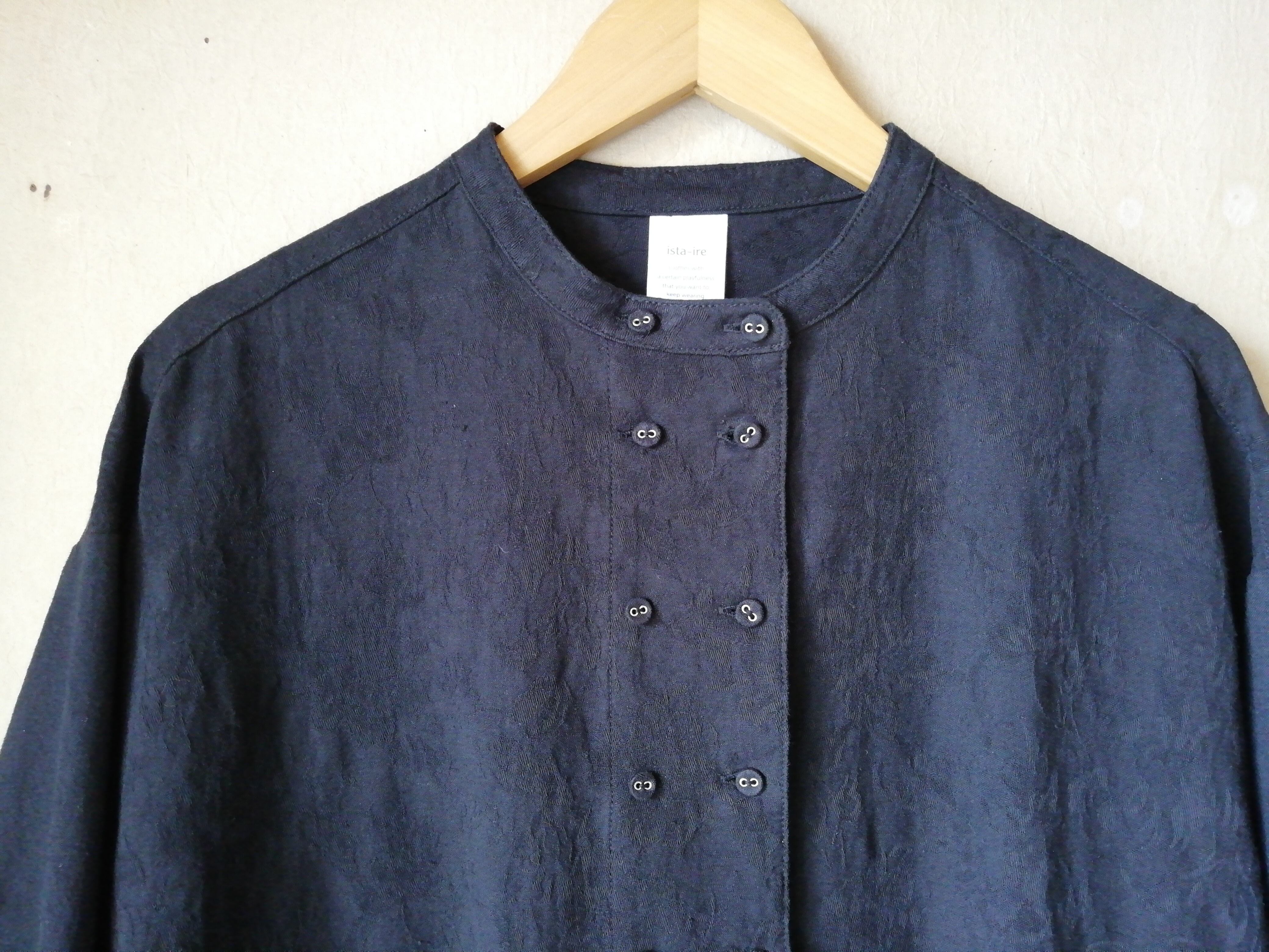 花柄ジャガード×綿麻のダブル釦ワンピース。上品な花柄ジャガードと程よい肉感のあるさらっとした綿麻素材を前後の身頃で切り替え、エレガントとシックを兼ね備えた贅沢な1枚に◎。フロントのダブル釦は右3個目からフェイクボタンで着用も簡単にしていただけるプルオーバーワンピースです。カラーは、ブラックになります。(柄部分)コットン60%、リネン30%、レーヨン10%。(無地部分)コットン70%、リネン30%。着丈120cm。バスト57cm。肩幅54cm。袖丈49cm。