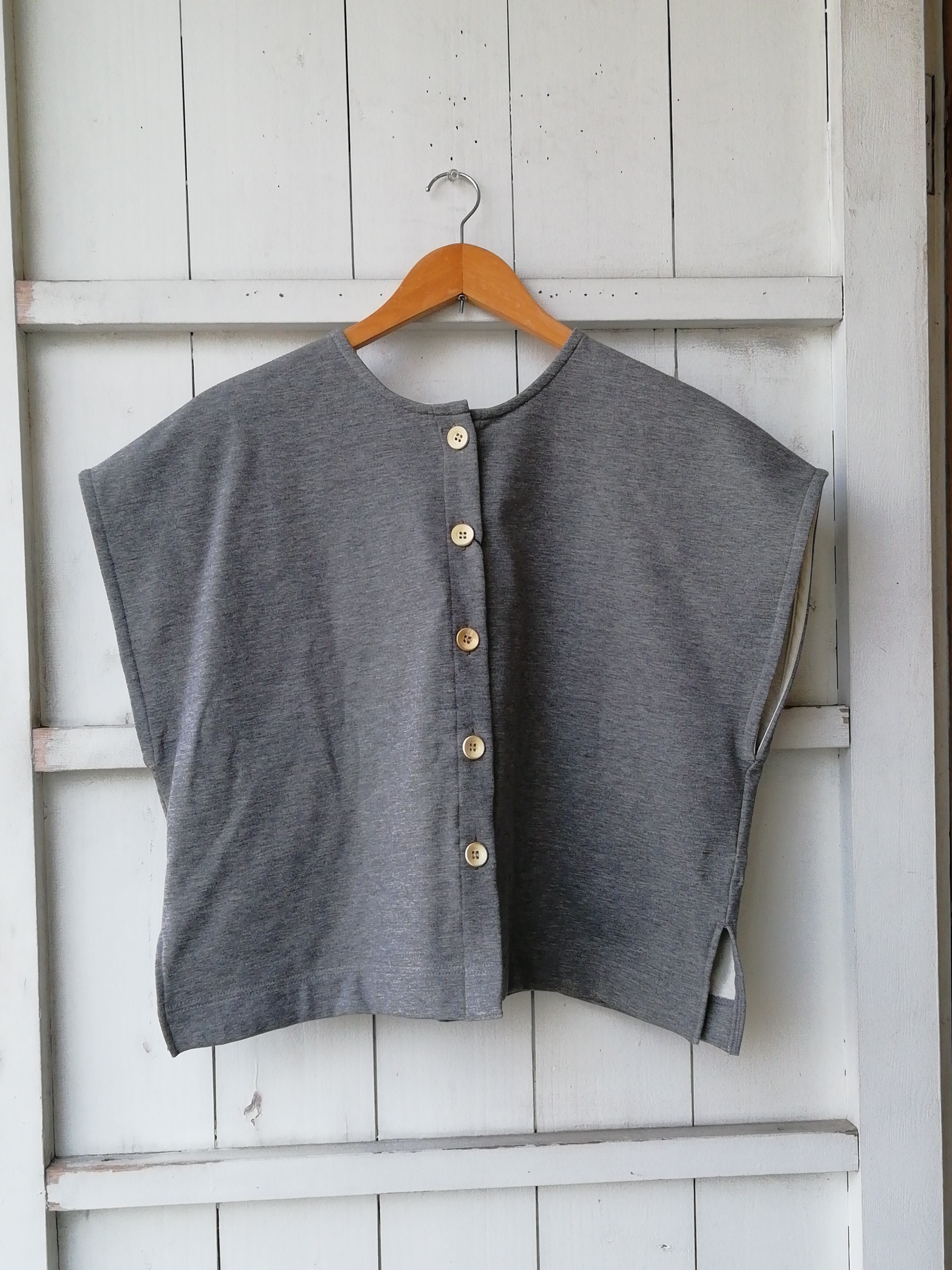 360度ストレッチでモチモチとした肌触りが特徴の裏毛ベスト。前後着用可能な2WAYタイプになっています。カラーは、杢グレーとブラックになります。コットン98%、ポリウレタン2%。着丈57㎝。身幅53cm。