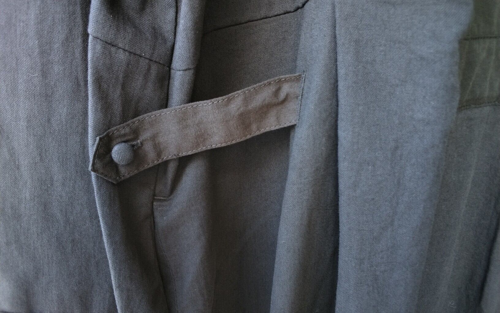 胸元のヨークデザインが印象的なゆったりシルエットワンピース。ウエスト部分はサイドのボタンで調節ができスタイリングが楽しめます。カラーは、ブラックになりますが、胸元、襟元、ウエスト部分が配色になっています。 コットン/100%