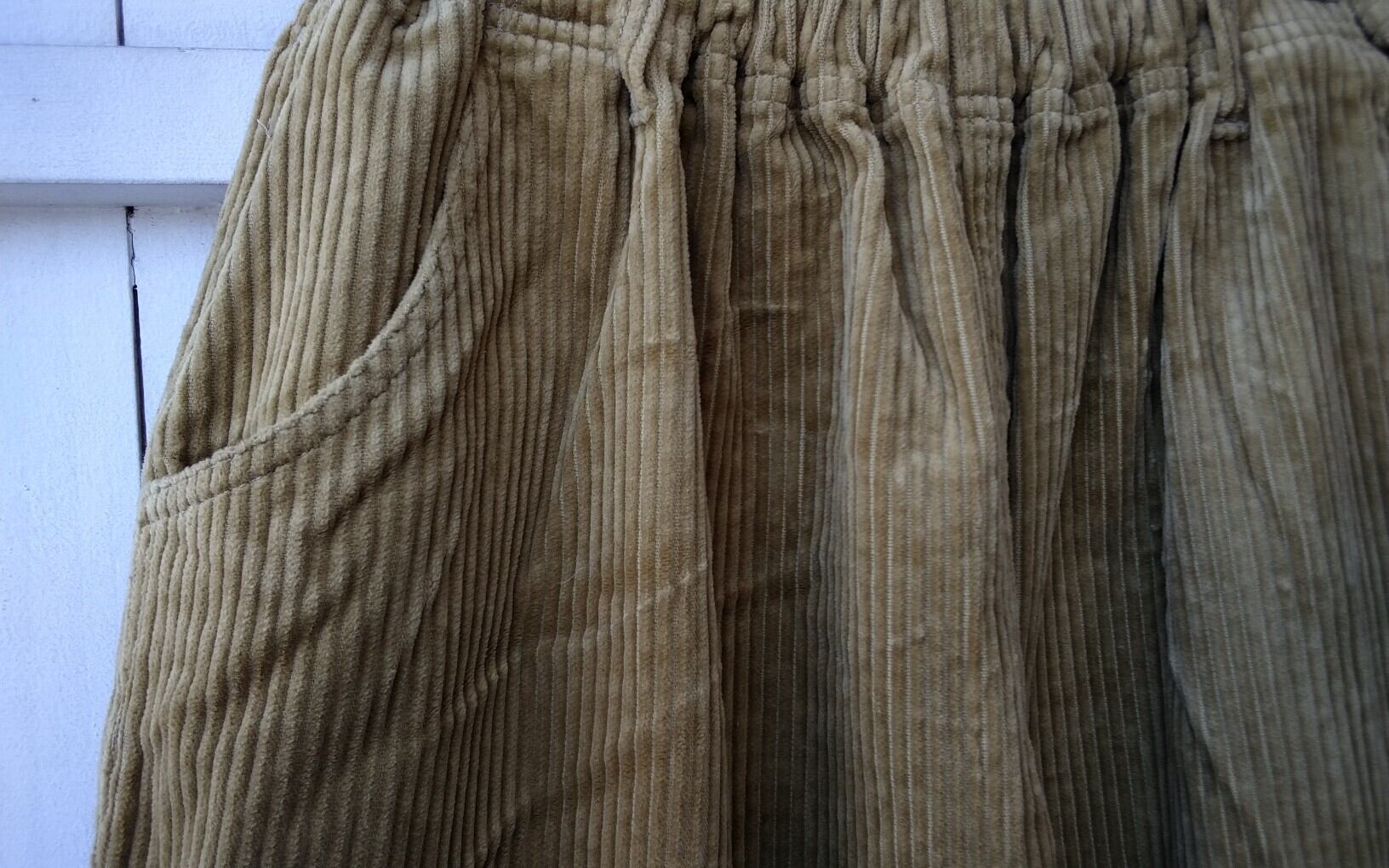 太めのコーデユロイ素材のイージーパンツは、ゆったりとしていて履き心地も抜群◎。カラーは、カーキになります。コットン 100%。