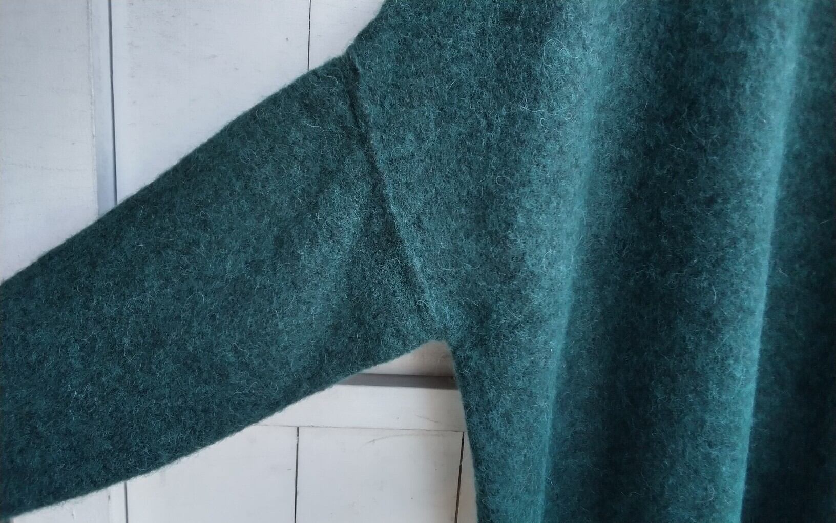 肌触りは、アルパカ混なので柔らかいのが特徴的で、ゆったり感もあるアイテムです。