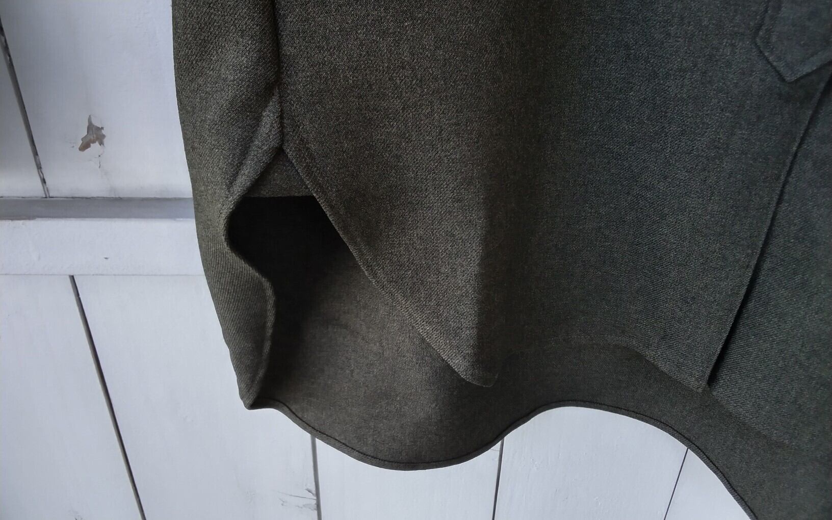 すっきりとしたスタンドカラー襟のプルオーバー型シャツ。温かみがありながらクリアな表面のサージ素材。ワークテイストのような雰囲気ながらきれいめな印象で着用いただけます。カラーは、カーキになります。ポリエステル100%。