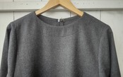 バックのネック部分にファスナーがつき開閉しやすく、デザインもとっても上品な印象でフォーマルなシーンでも活躍してくれるアイテムです。カラーは、グレーになります。ウール99%、ポリウレタン1%。