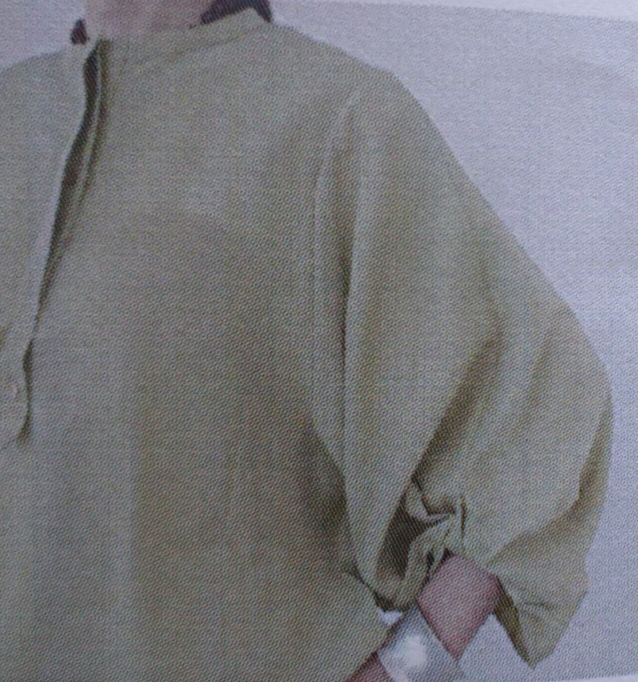 テンセルリネンの肌あたり滑らか、程よい落ち感のあるブラウスです。袖口をツイストさせたデザインが華やかさをプラス。1枚でさまになり、合わせるものできれいめにもカジュアルにも◎。カラーは、オフホワイトとライトグリーンになります。テンセル85%、リネン15%。