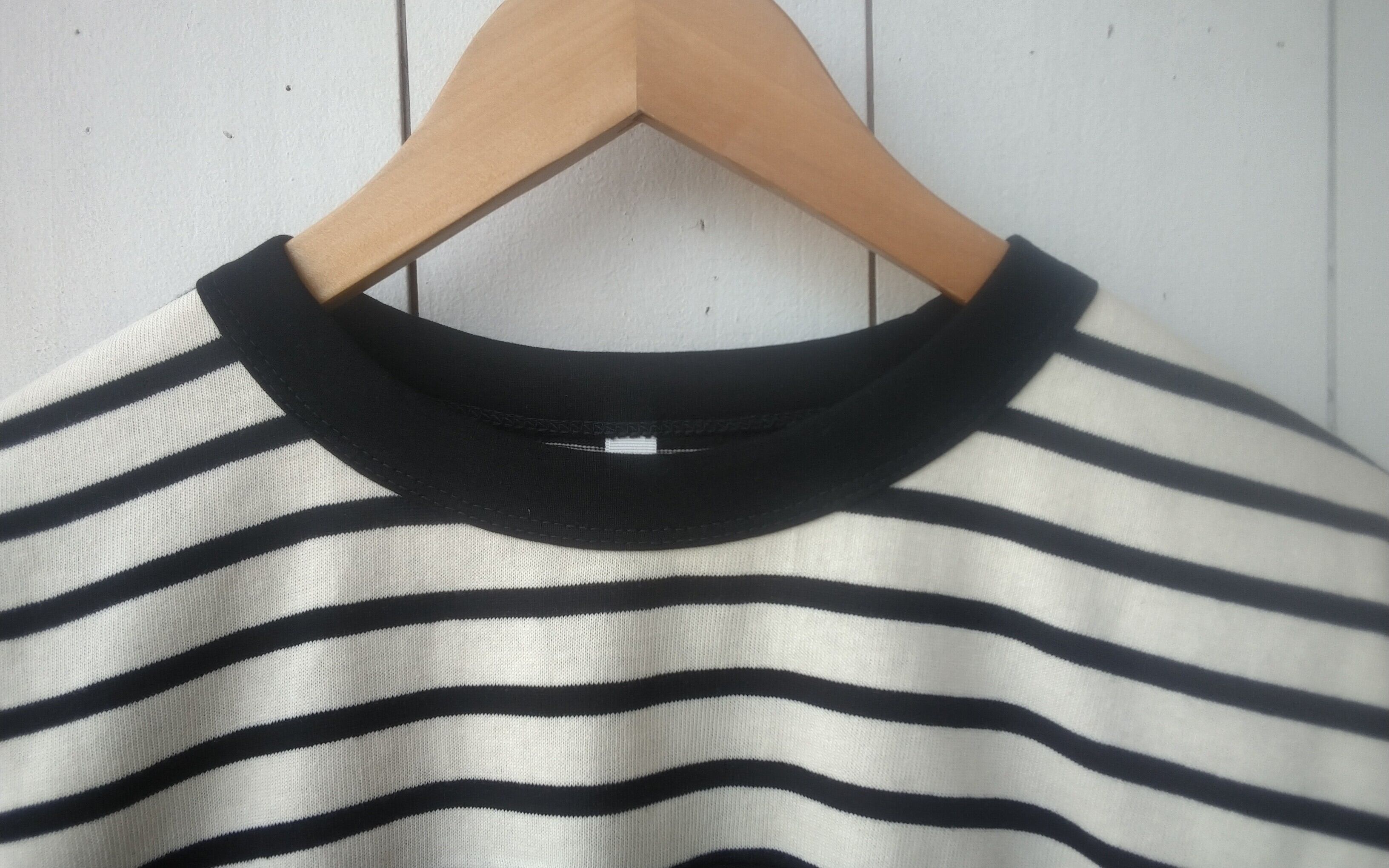 フットボールTをベースにMinamotoで切り替えたボーダーと無地のコンビアイテム。オーバーサイズなシルエットで着心地も◎。切り替えデザインが印象的な1枚です。カラーは、ブラックになります。コットン100%。