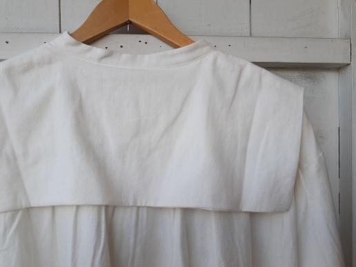 ふんわりとしたフラップデザインが印象的な1枚。ボタンはくるみボタンになっています。カラーは、オフホワイトとブラックになります。コットン100%。