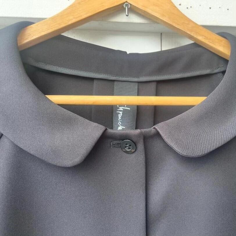オケージョンシーンにぴったりのショートジャケット」。短めの丈でジャンパースカートやワンピースとの相性も◎。カラーはブラックになります。ポリエステル100%。