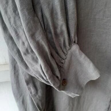 柔らかなフレンチリネンを使用した、ふんわりボリュームのあるスリーブとスリットデザインが印象的な1枚。カラーは、グレーになります。リネン100%。