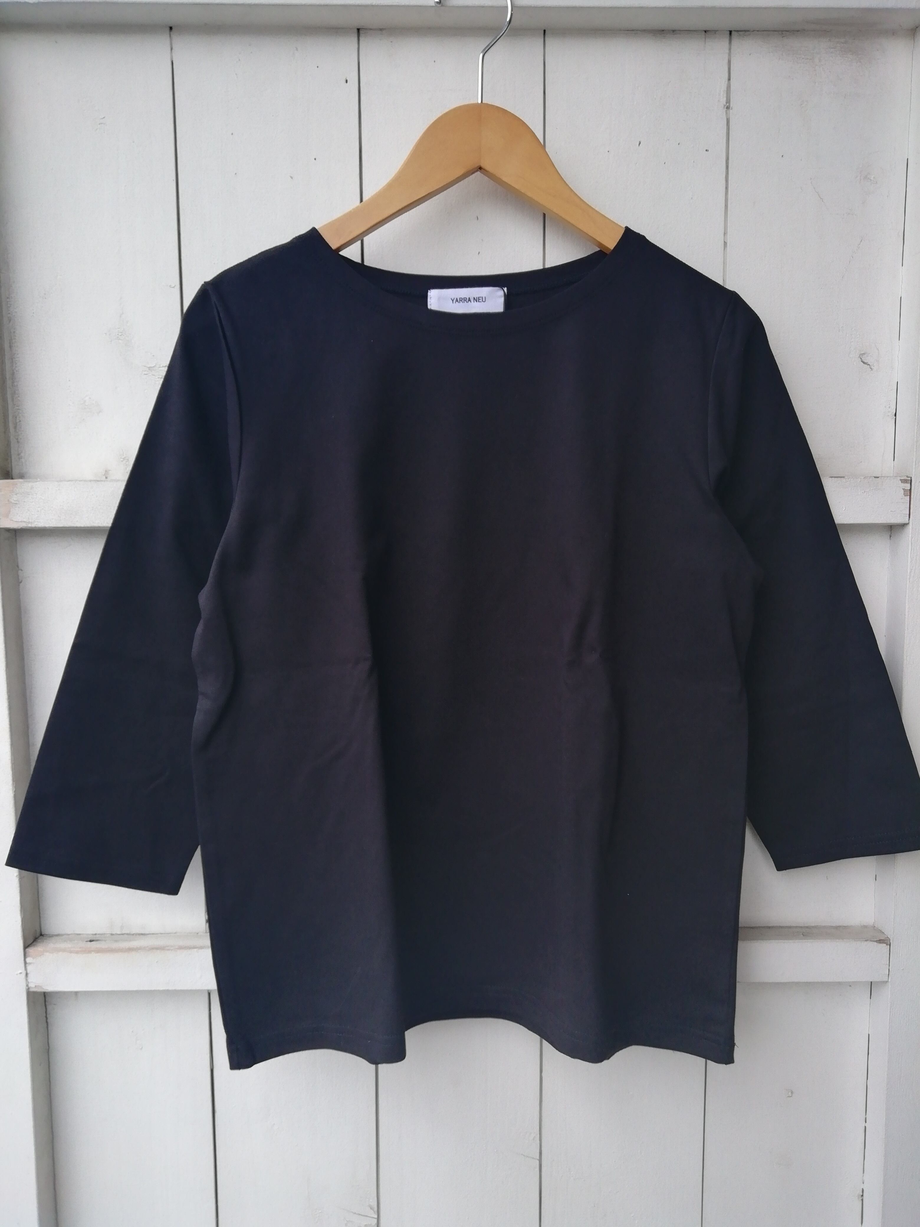 ベーシックに1枚着もインナーとしても着用できる7分袖カットソー。接触冷感、透湿性、UVカット機能をモチーフ合わせた微強撚糸を引きそろえた素材を使用。カラーは、イエローとブラックになります。コットン100%。L 60cm。