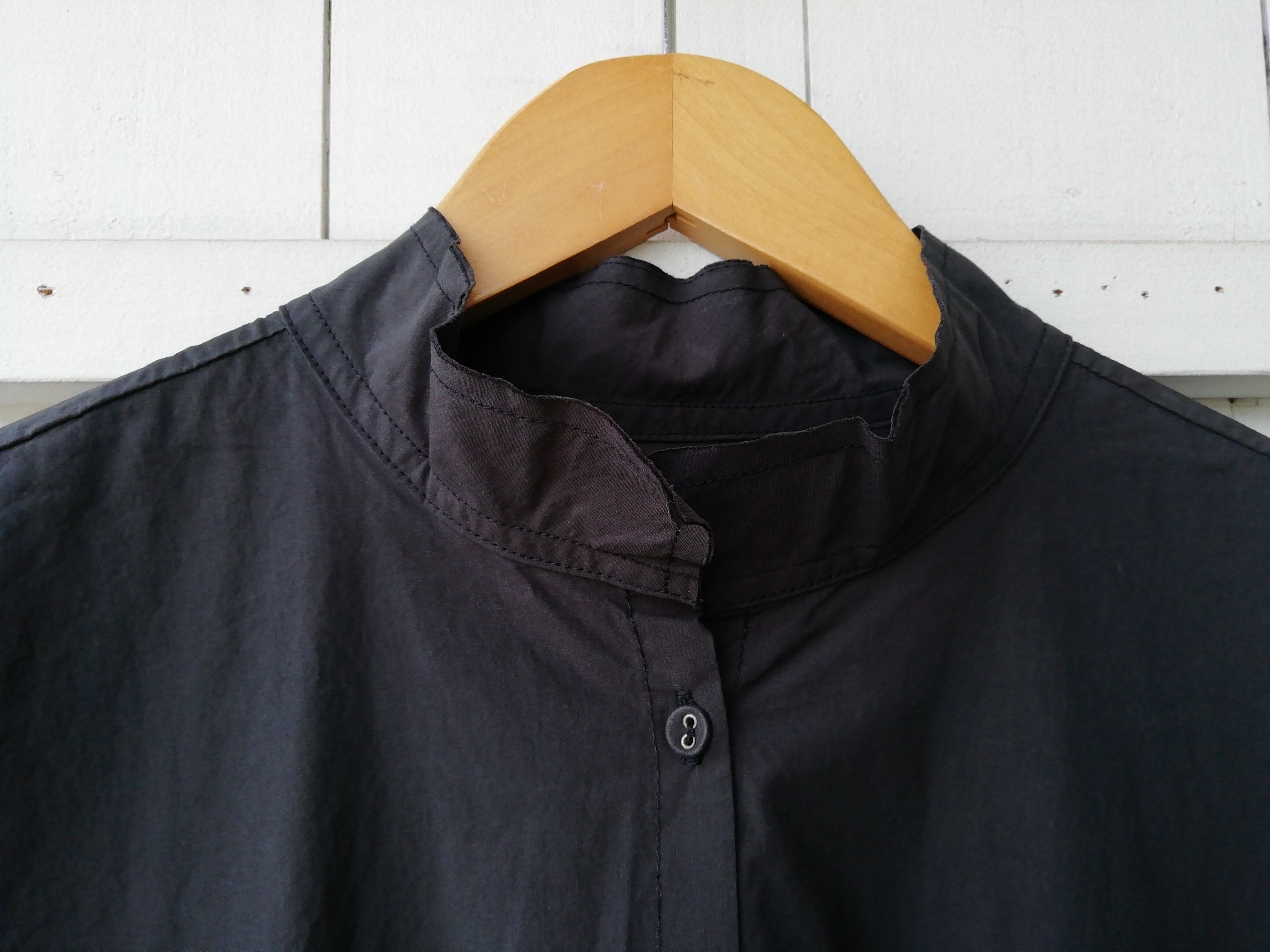 高密度で織られたタイプライター生地を使用し軽くてハリのある質感のシャツワンピース。ゆったりとした身幅で羽織としても重宝しそうです。カラーは、ブラックになります。コットン100%。着丈118.5㎝。身巾64cm。